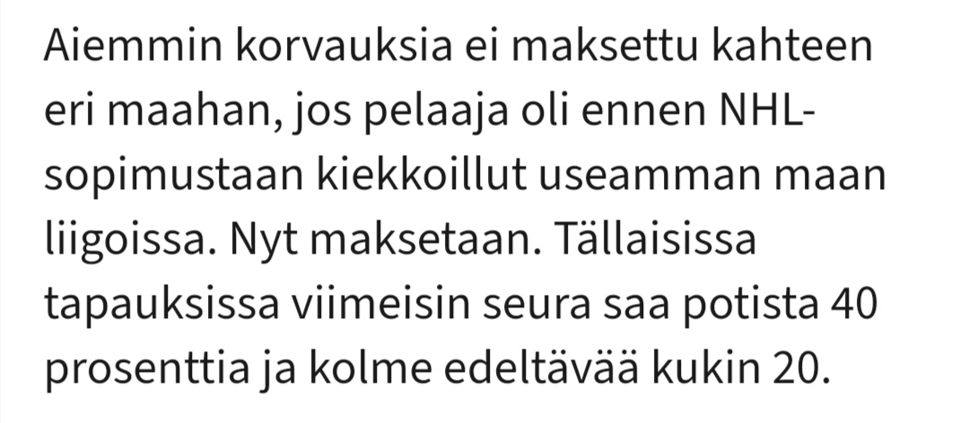 Matinpalostakin siis 50%, jos tekisi NHL-sopimuksen, mitä itse kyllä epäilen.
