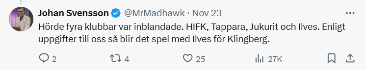 Hänhän rupesi vänkäämään mm., että Klingbergin äiti on niin tyhmä, että ruvennut seuraamaan IG:ssä kaupungin väärää joukkuetta vahingossa jne. ja keksi omasta päästään, että Grönborg on käynyt ihan henkilökohtaisesti Klingbergiä tapaamassa ja suorastaan ärsyyntyi kun joku kehtasi epäillä, että olisikin menossa Ilvekseen.