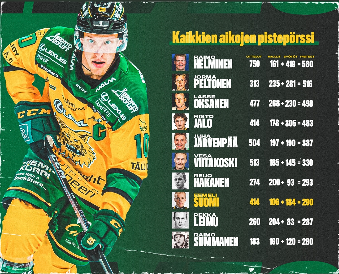 Koko joukkue menisi jäälle juhlistamaan Eemelin 581 tehopistettä ja koko halli nousee taputtamaan ja ylistämään tätä THE MÖYRIJÄÄ.