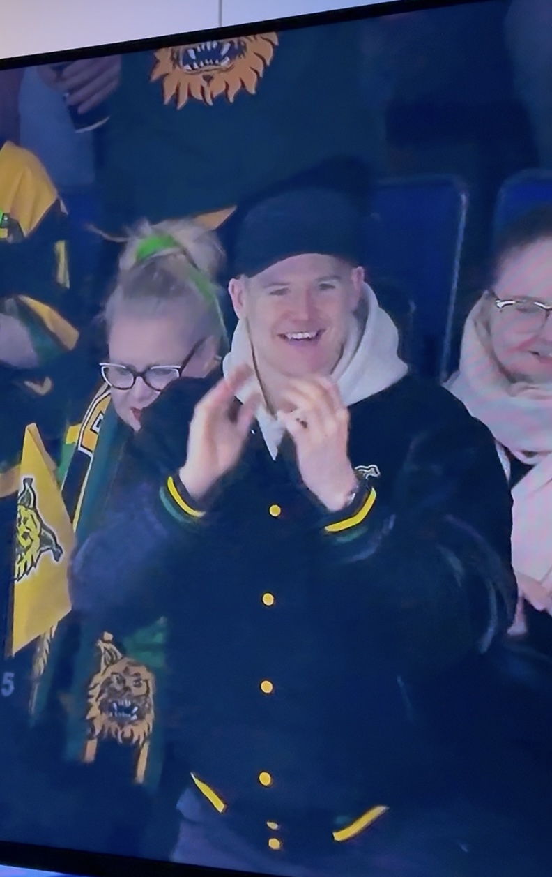 Loukkaantui siinä game 5 lopussa.Toivottavasti tämä Ilves-soturi on vain ja ainoastaan loukin takia katsomossa (ja en siis todellakaan toivo loukkia).