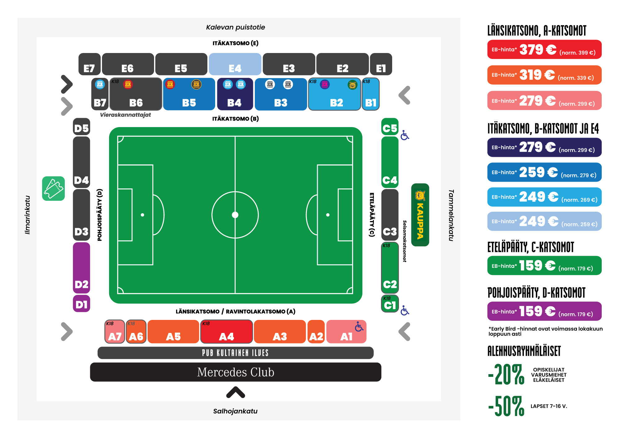 Myös C2 ensi kaudella kannattajakatsomo, seisomakatsomona ja anniskelualueena. C3 kausarit oletettavasti sitten Niilojen kautta.