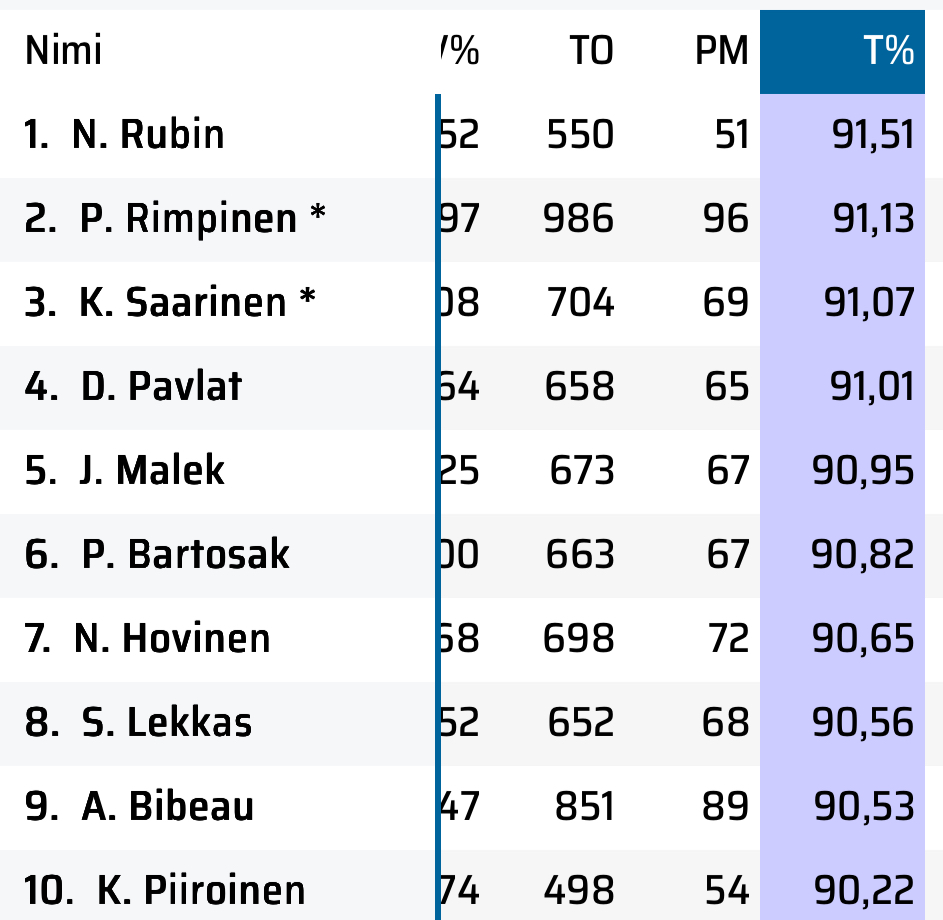 Ja se torjuntaprosentti muuten oli 90,65%, onko nuo muutkin tässä listalla sitten paskoja?