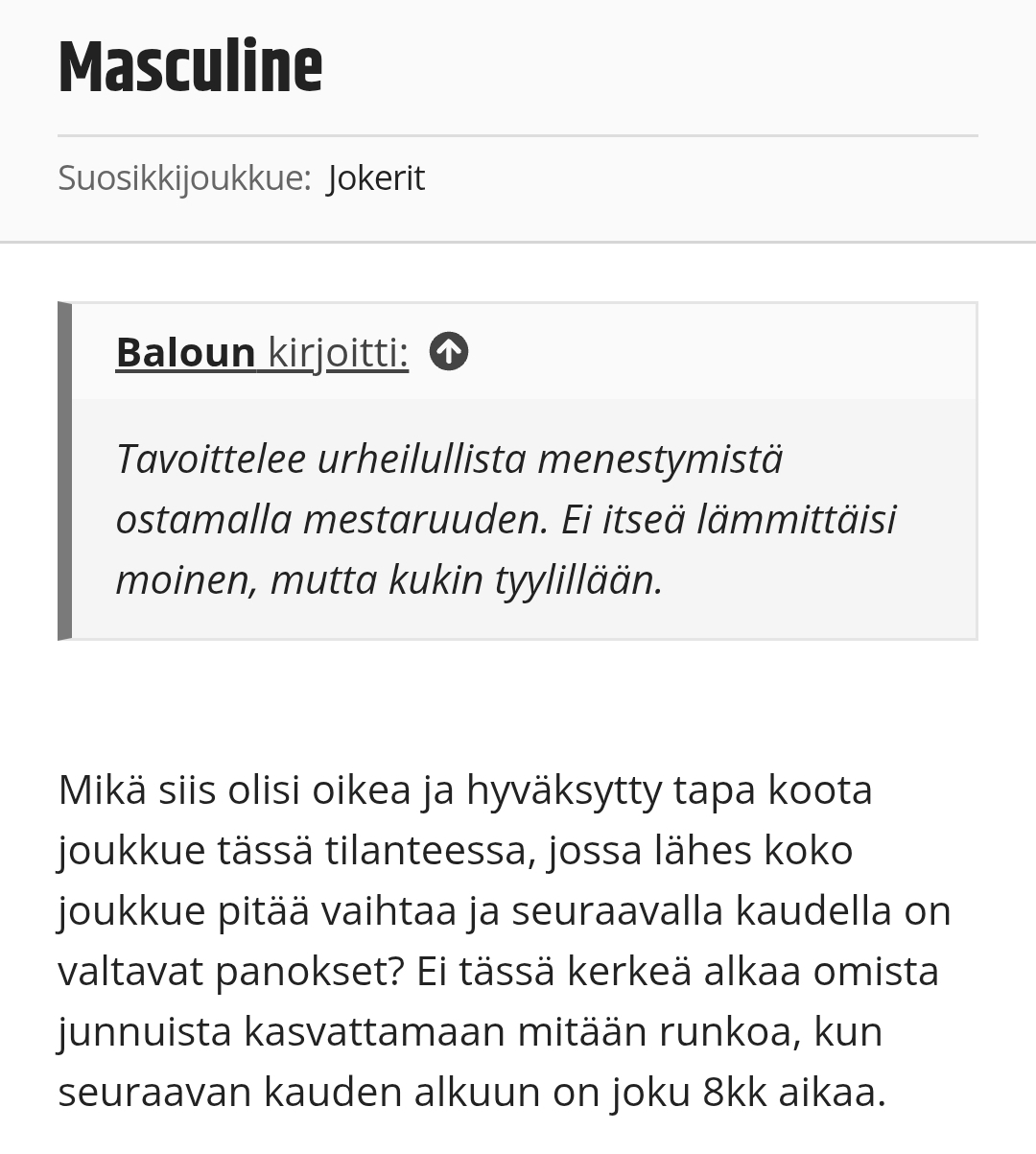 Jokerit ei kykene nousemaan urheilullisin keinoin —> Kabinettipäätöksellä Liigaan ja heti aloitetaan pelaajahankinnat ihan samalla tyylillä kuin Hjallis konsanaan. Pistepörssin yläpäästä vaan kaikki jotka irti lähtee.