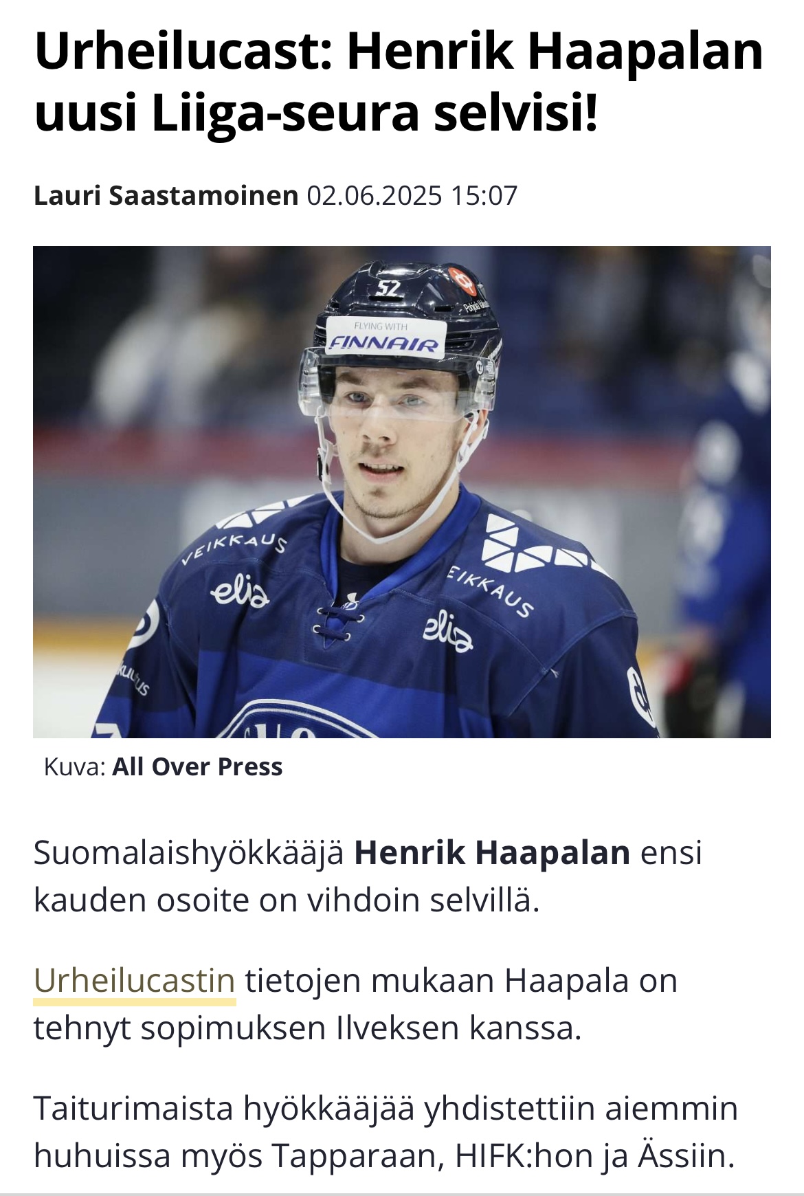Urheilucast: Henrik Haapalan uusi Liiga-seura selvisi!​
