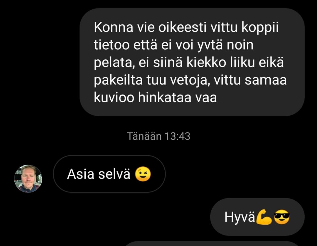 Samaa mieltä. Kätisyydetkin taisi mennä noissa vähän perseelleen. Tais olla kummassakin kentässä 4-1, kun paras tilanne olisi 3-2 ja mieluiten 3 pelinpyörittäjän kätistä pelaajaa.Kuka tuossa Konnan ylivoimakoostumuksessa oli laukoja? Kaksi pelintekijää, joista kumpikaan ei lauo suoraan syötöstä. Mieho keskustassa kiekon jakajana selkä maalille päin syöttämässä joko takaisin Suomelle tai Kontiolalle tai pelaamassa kiekkoa viivaan. Varsinaista maskimiestä ei ollenkaan. Ja kaupan päälle Sebök aika hyödyttömänä ilman selkeää roolia. Baptiste tai Nikolishin tuohon koostumukseen laukomaan ja Sebök Ikosen ketjuun peliä tekemään Männyn kanssa?