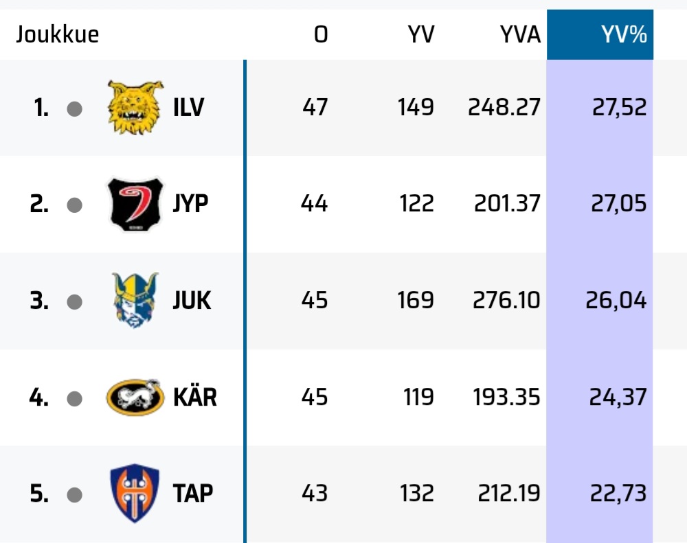 Ylivoima tehnyt tulosta koko kauden ja alivoima paranee ihan silminnähden koko ajan.