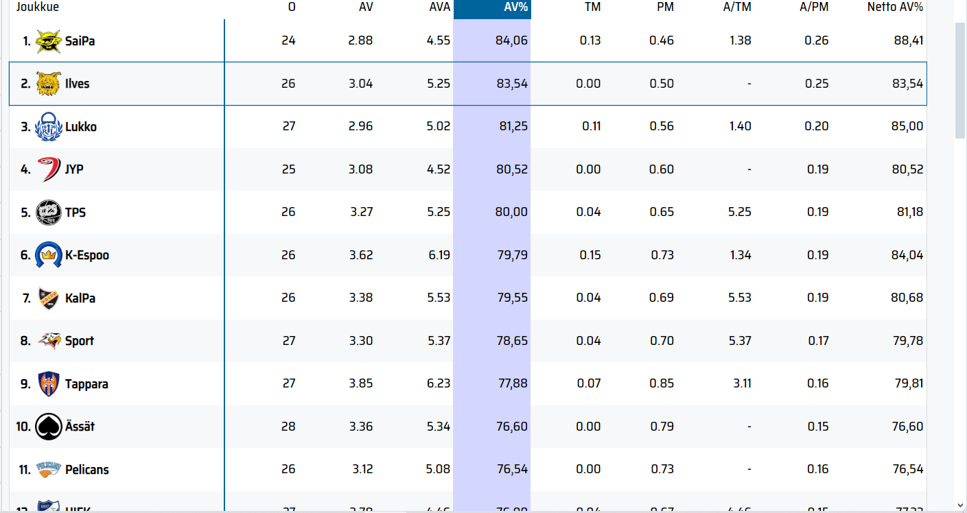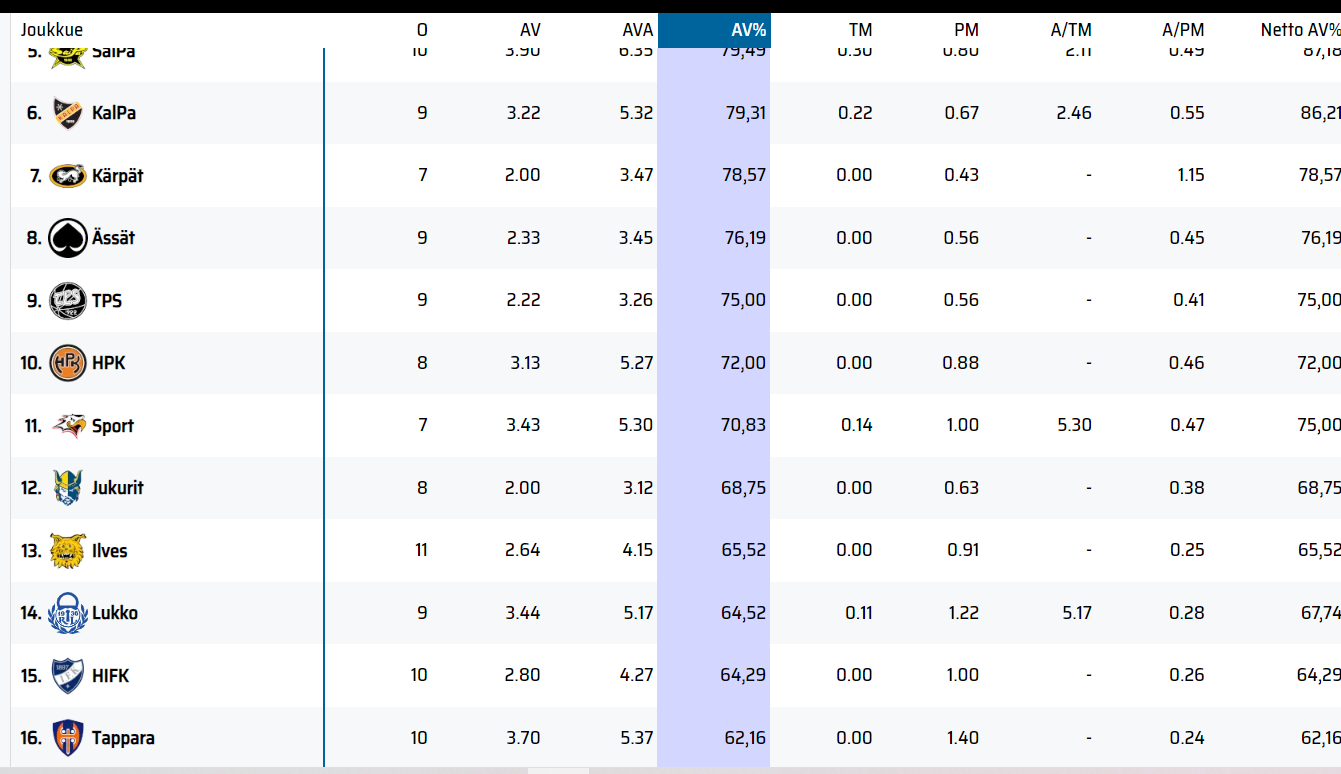 Alivoiman puolelta mainittakoon se, että Frimanin ja Latvalan oltua jäällä av-maaleja ei ole mennyt omiin sitten kierroksella 8 pelatun Porin vierailun jälkeen. Ajallisesti siis reilu 31 minsaa putkeen.