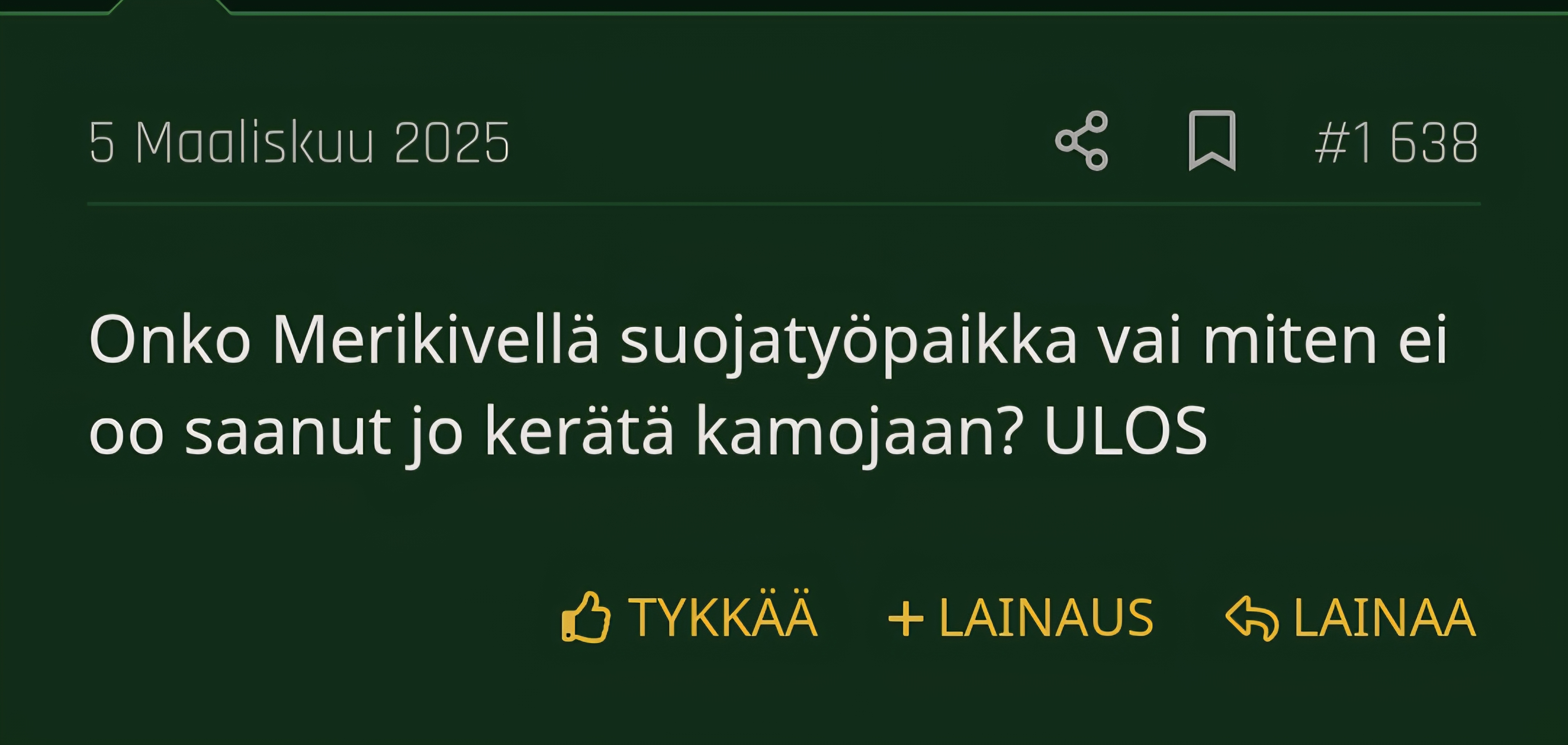 Toisen YV ketjun uhka on ihan nolla tällä hetkellä.