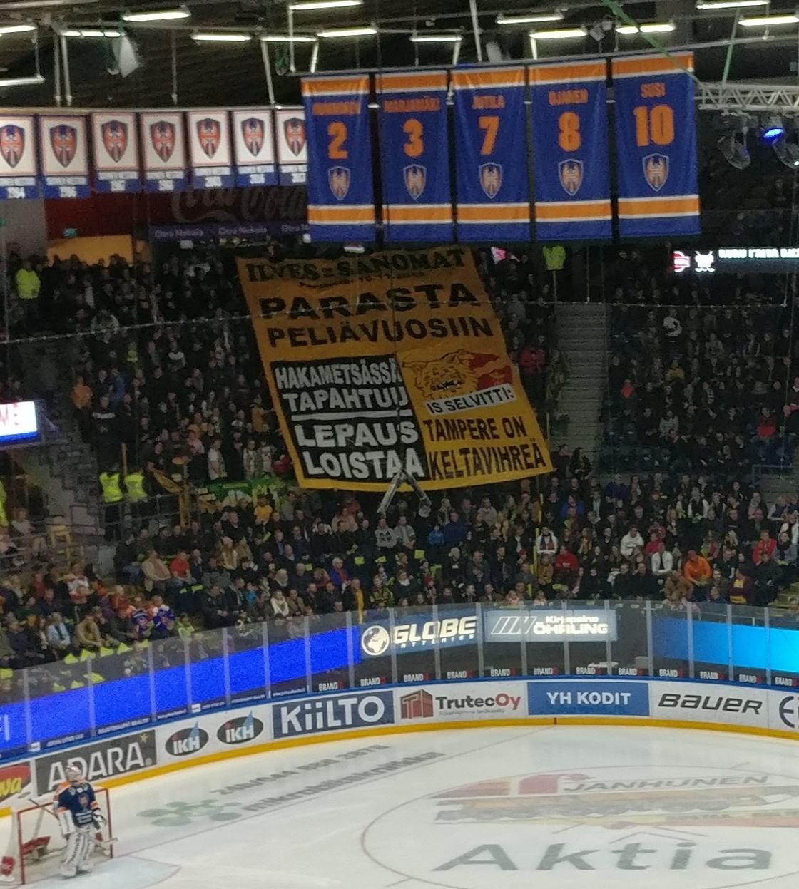 Riemuhan ei varsinaisesti revennyt keskarista, vaan siitä että yksi järjestyksenvalvoja tuli suoralta kädeltä vittuilemaan capolle ja muille. Tämän myös kyseisen hallin turvallisuuspäällikkö huomasi ja totesi, että siinä mentiin täysin metsään. Samalla vielä ravintolakatsomosta tuli jatkuvaa huutelua pelin jälkeen, eikä siihen juurikaan puututtu, joten ei ihmekkään että siellä on ollu tunteet kuumina jo ihan pelillisten otteiden johdosta.