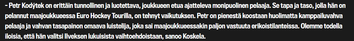 Itse pidän Tikkaa melkeinpä parhaana Ilveksen kolmossentterinä 90-luvun jälkeen.