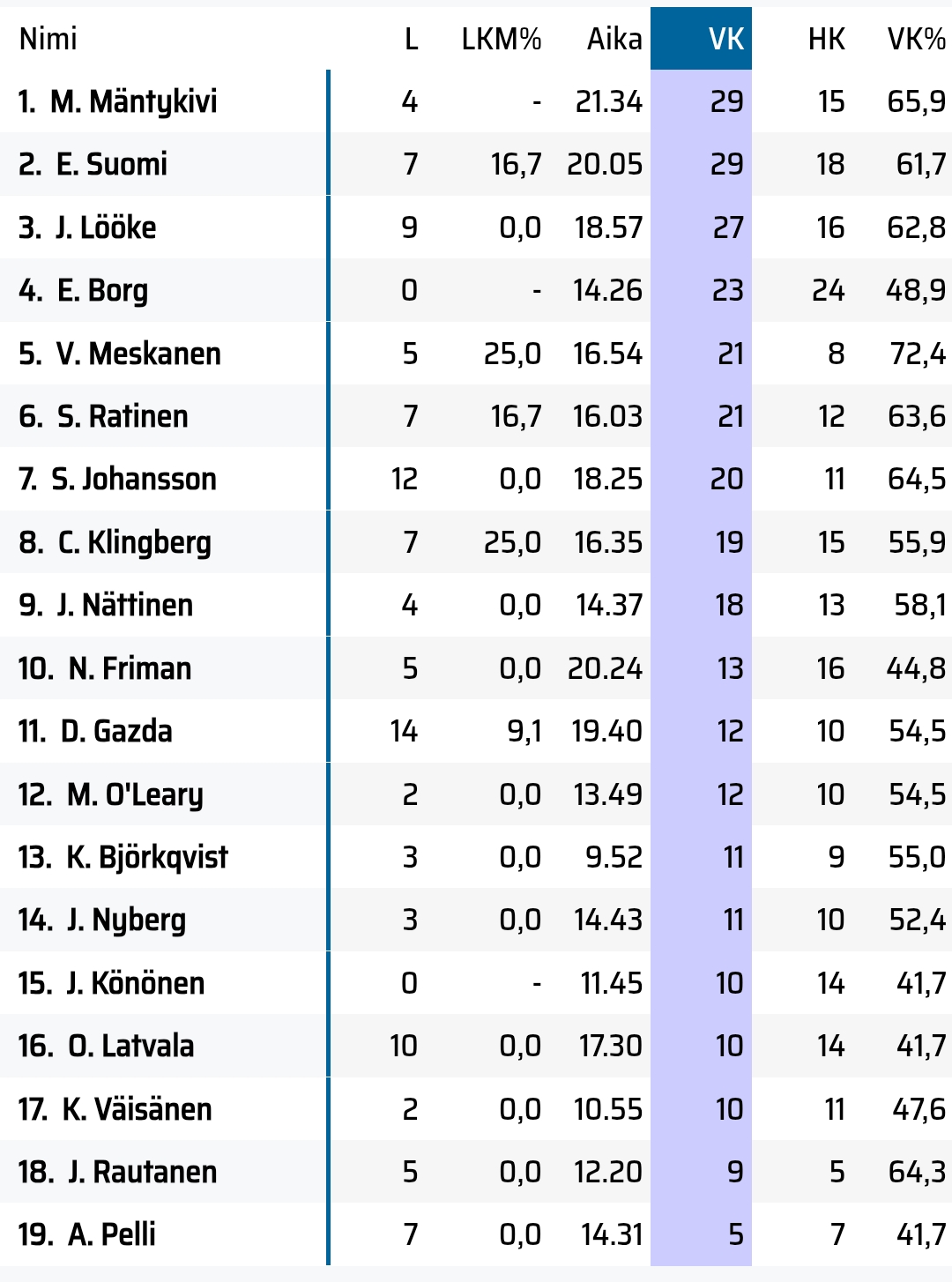 Björkqvistiltä odotin myös enemmän mutta hänkin oli loukissa, joten en tiedä miten pääsi treenaamaan, mutta en hänen kohdallaan ihan niin paljoa katsoisi sormien välistä kuin Najmanin. Väisänen ja Könönen kohdalla ei ihan kauheasti ollut omia odotuksia mutta Kassun, Köntsän tai Väiskin tämän astisten esitysten perusteella ei todellakaan voi vetää koko rosteria lokaan ja vetäisi pakastealtaallista herneitä nenääni.....