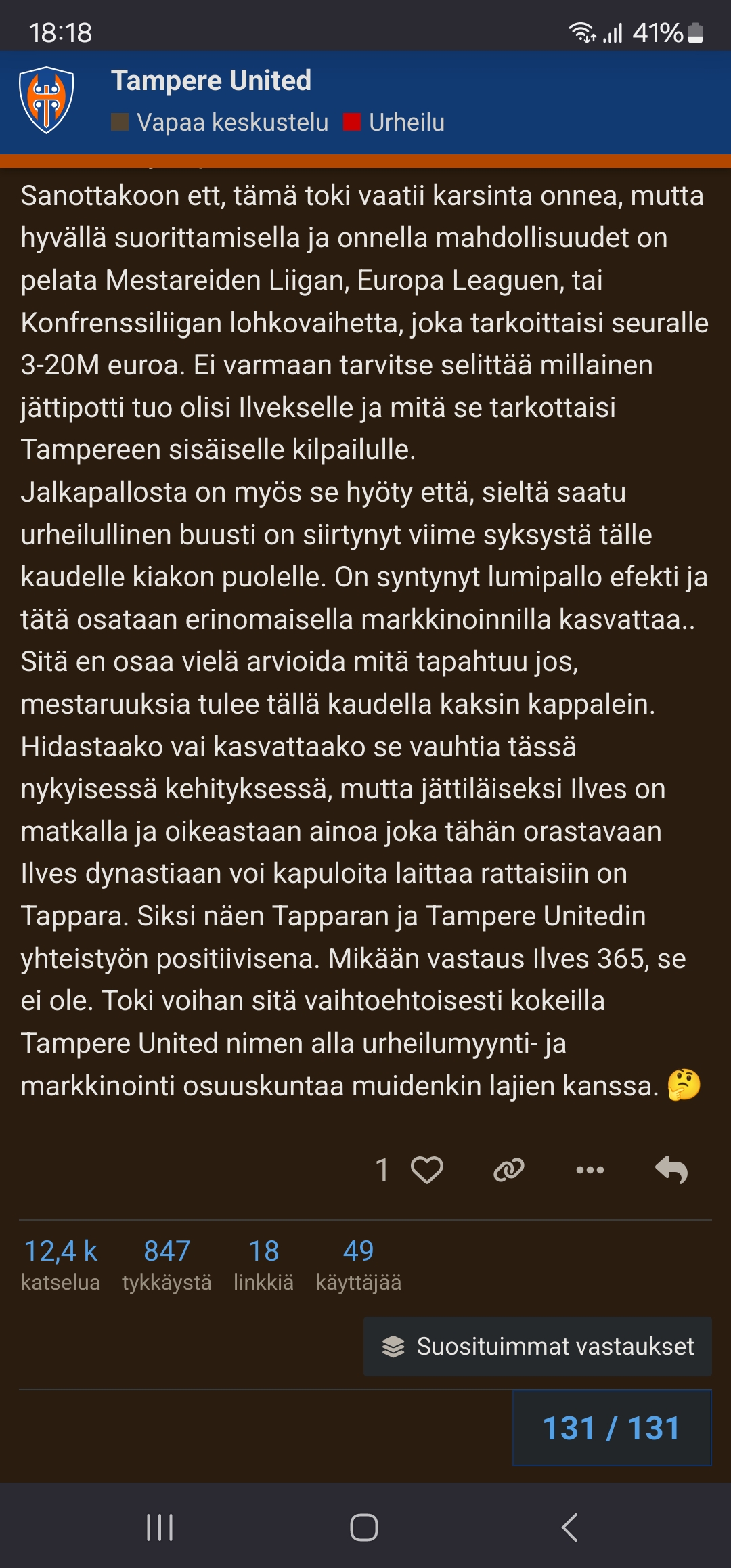 Melkeimpä sanoisin että nyt vasta ollaan Ilves buumin aallonharjalle kiivetty.