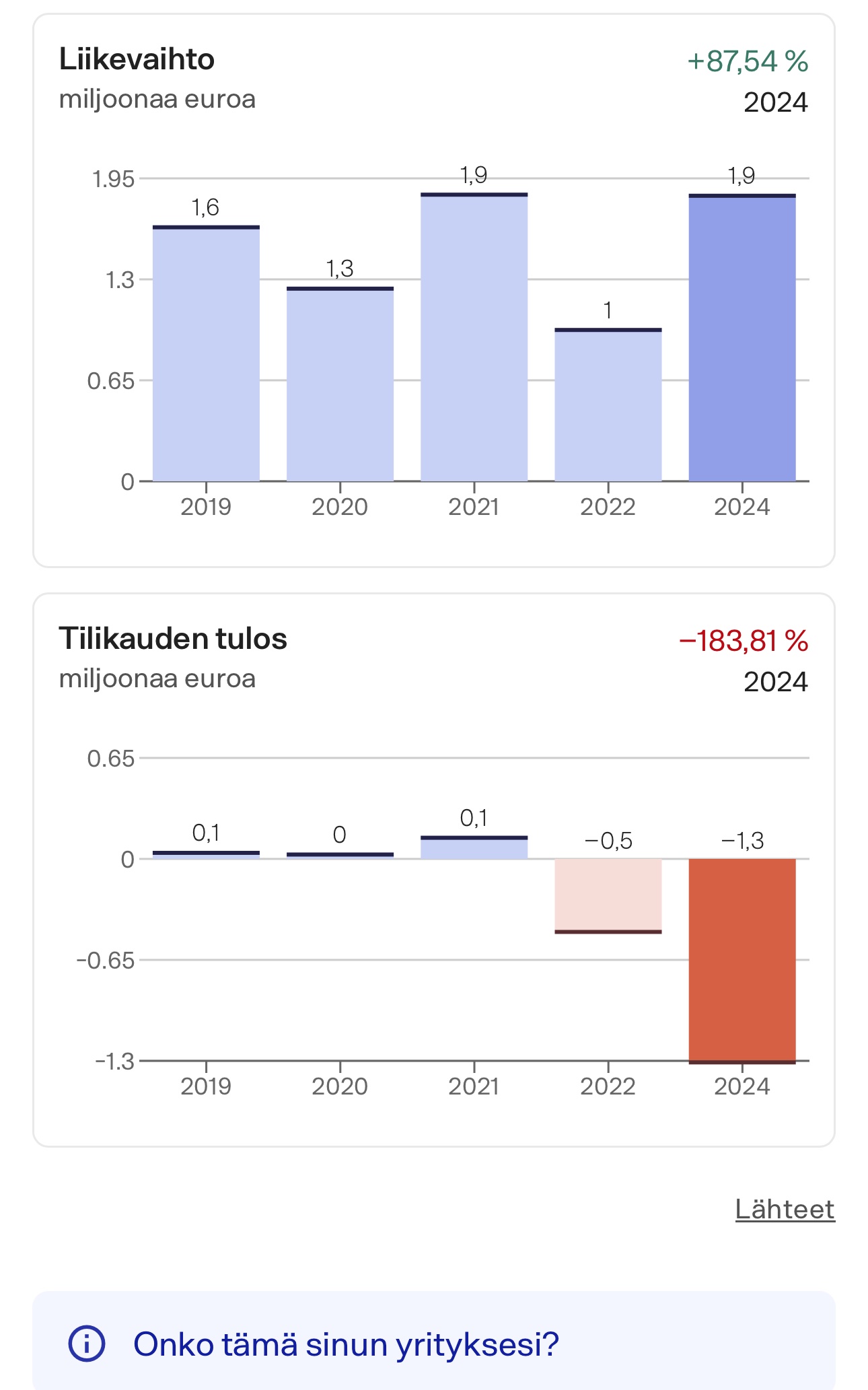 Niin siis aika ennen 365 virityksiä?Vastaan tänne oikeaan ketjuun, mutta luulen että @Pelisilmä tarkoitti sitä että edellisvuosilta tappiot ovat yhteensä 1,7 miljoonan luokkaa.