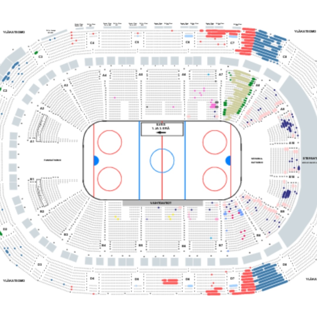 Voihan sitä monikin halua katsoa päädystä peliä, mutta kaikkein ylimmät rivit ei kiinnosta. Kaikki katsomot nyt vaan auki hopi hopi.Miksi nyt, kun on noin paljon myymättömiä paikkoja ympäri hallia? Onko jossain joku joka kaipaa vieraspäätyyn paikkaa, mutta ei pysty tällä hetkellä sitä ostamaan?