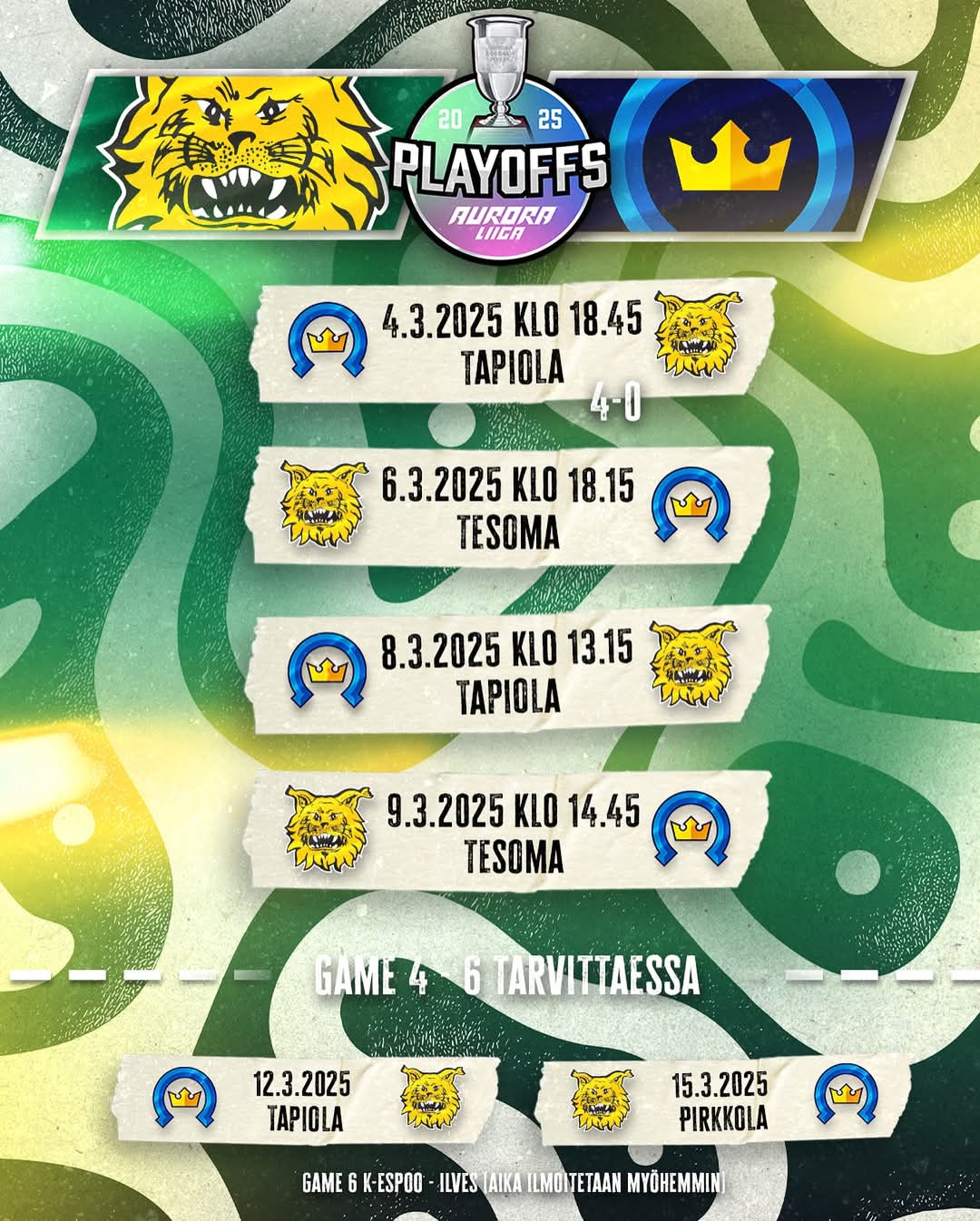 Kiekko-Espoo−Ilves, 4−0 (ottelusarja 1−0)