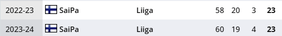 Alla SaiPasta 19 ja 20 maalin kaudet. Eikös tuossa nyt oo ihan hyvin osuttu maaliin? :D
