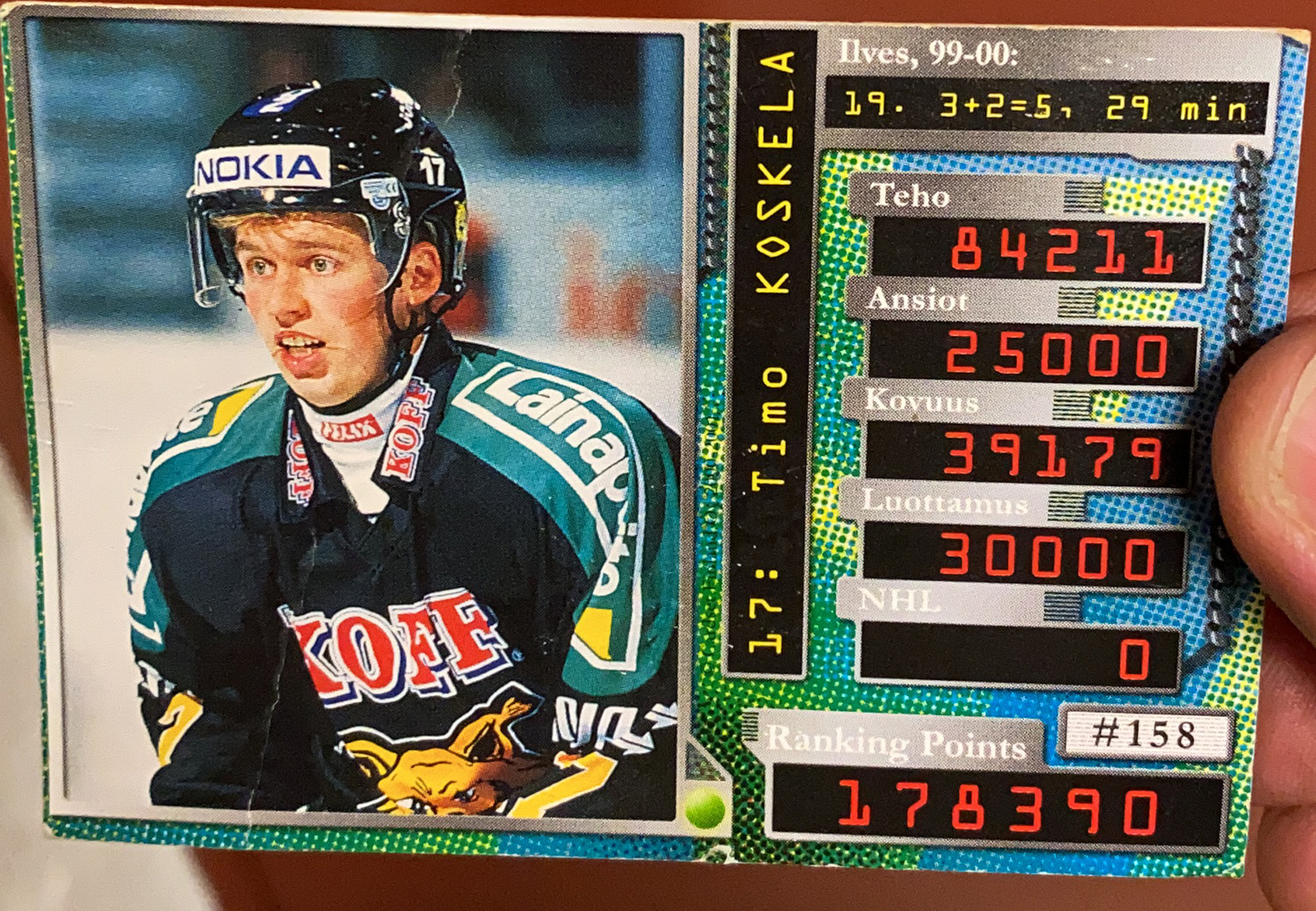 29 jäähyminuuttia -19 peliä- 5 pistettä + 17 pelinumero
