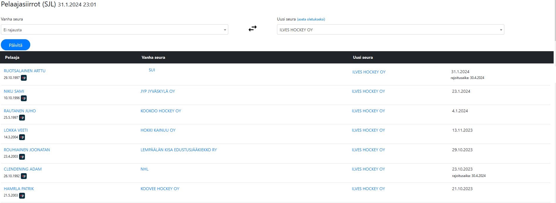 Suomen Jääkiekkoliiton palvelusivusto.fi:ssä julkaistut pelaajasiirrotkiekko.pro