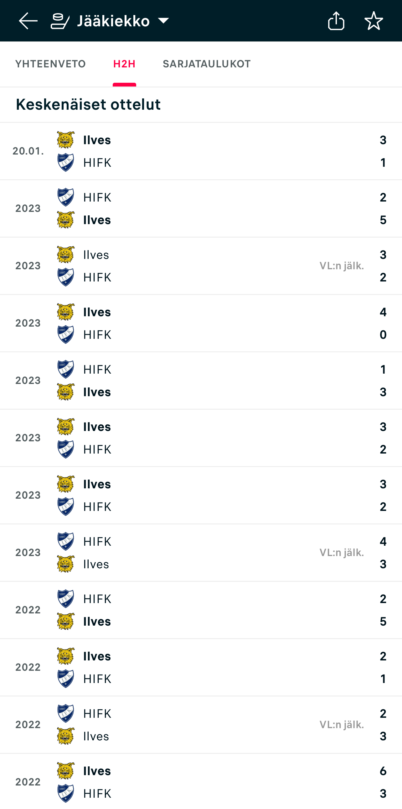 Niin hävittiin aloitukset Tampereellakin hifkiä vastaan viimeksi satanolla,mutta kumma se ei näkynyt maali sarakkeessa. Maalit kai edelleen ratkaisevat pudotuspeleihin mentäessäkin........Aivan varmasti kostautuu, jos kohdataan esim HIFK. Sielä on kolme yli 55-prosentin miestä, joista yksi on liigan paras aloittaja eli Lehterä. Lisäksi Väänänen yli 50-pinnan mies, eli HIFK:ta vastaan aloitukset näkyvät ainakin. Tänään siihen saadaan jo osviittaa.