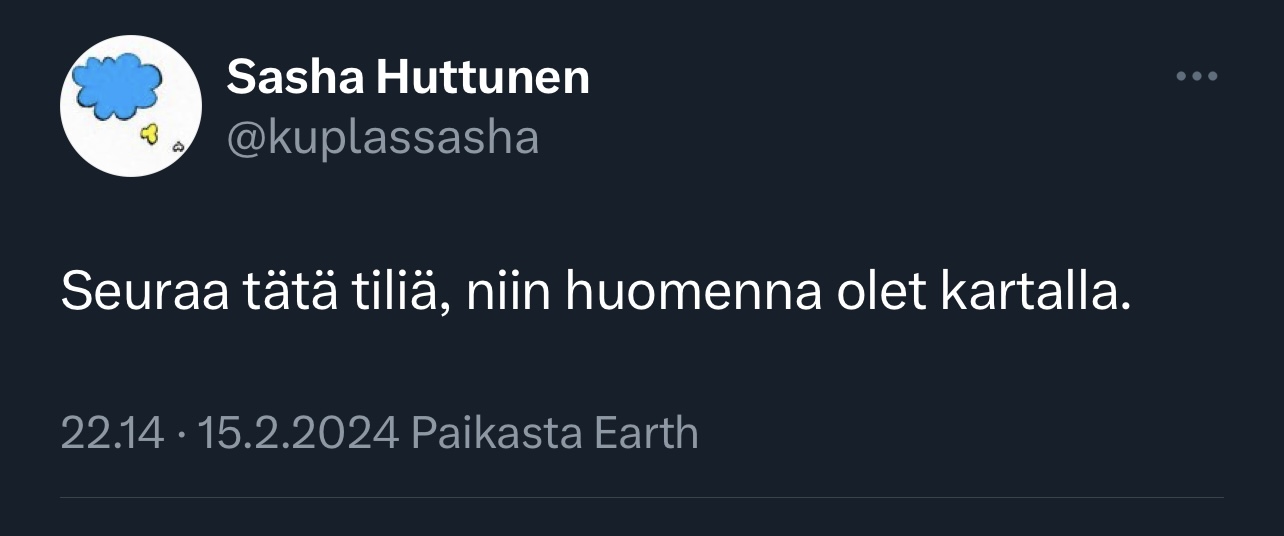 Eli laita Tillu yv tai jotain, niin kirjoitellaan paperit. Lauantaina jo valmis askiin.