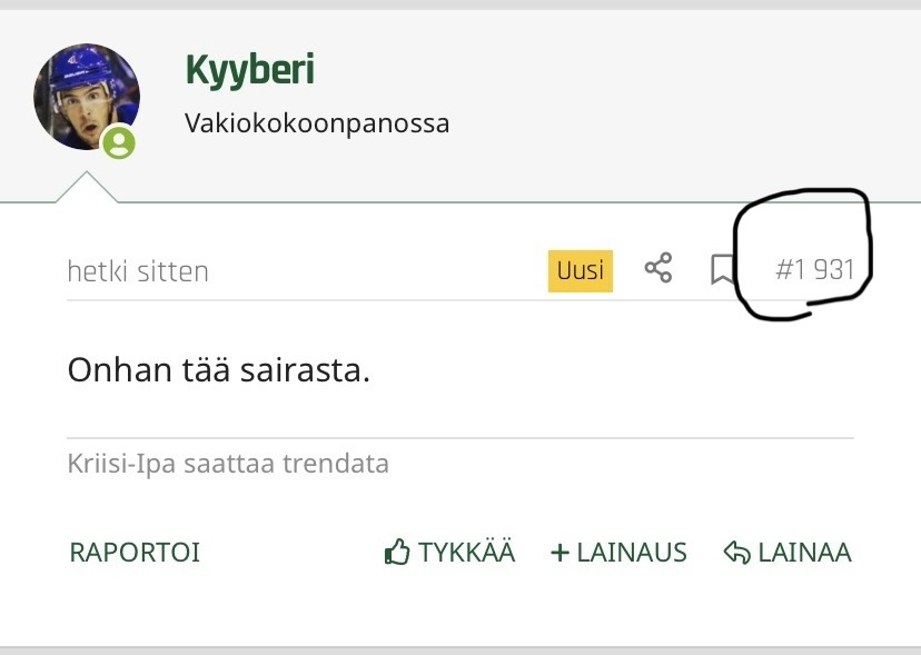 viesti Nro. 1931 ei olisi voinut olla osuvampi.