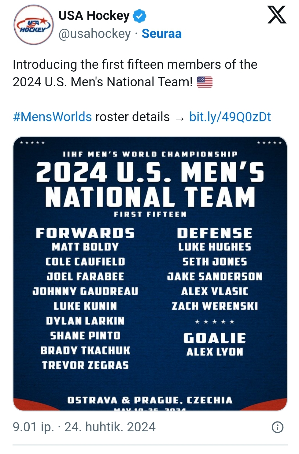 Niin monella äijällä näyttää olevan sopimukset katkolla, että taitaa tulla sellaista perus NHL-puurtajaa pääasiassa jos jotain. Juuri sellaiselta @PUMPPU n mainitsemalta perus Jalosen jengiltä vaikuttaisi. Valitettavasti. Onneksi sentään Jenkit on lähdössä paremmalla jengillä ja Kanadasta nyt ei huonoa jengiä kasattua saa. Toivotaan, että Ruotsilla haluaa jätkiä tulla antamaan näyttöjä neljän maan turnaukseen ja Tshekki saa kotikisoihin hyvän jengin. Toisi edes jotain mielenkiintoa kisoja kohtaan.Tässä kun tätä Suomen peliä katsoo, niin kasassa tällä hetkellä aika mauton ja hajuton lauma. Toivotaan mielenkiintoisia vahvistuksia Maccelli etunenässä.