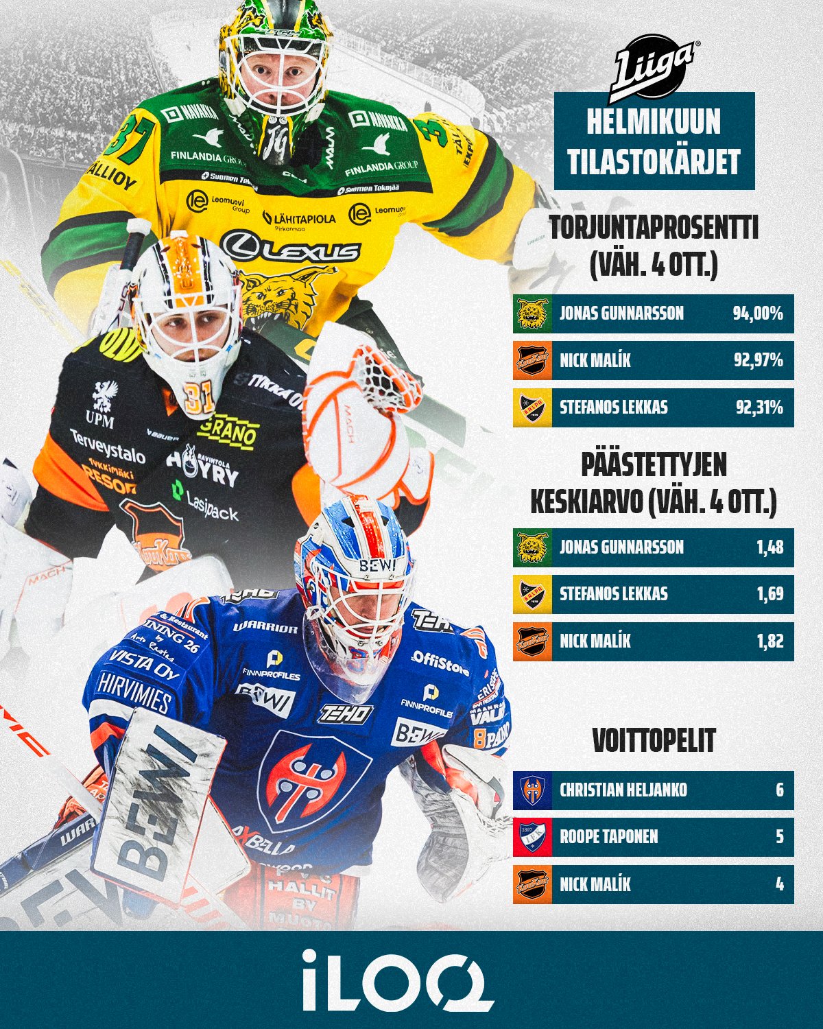 Juuri näin. Gunnarsonin pelityyli ja koko on sitä luokkaa, että joutuu tekemään 3x enemmän töitä jokaisen torjunnan eteen. Näin ollen jokainen torjunta näyttää game saverilta. Molemmat hyviä veskareita, mutta Gunnarsonin venymiset näyttää Malekilla ihan normaaleilta torjunnoilta.Pystyi ainakin runkosarjassa. Lisäksi isompana kaverina ei joudu venymään joka tilanteeseen kun myös sijoittuu paremmin kuin Gunnarsson. Gunnarsson liukuu ajoittain koko maalin ohi niinkuin Kolppanen konsanaan.