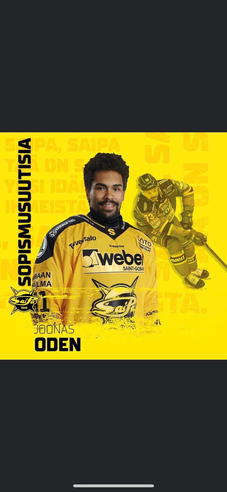 SaiPa saa erinomaisen vahvistuksen, kun Ilveksen laitahyökkääjä Joonas Oden siirtyy SaiPalle vuoteen 2024 ulottuvalla sopimuksella.saipa.fi