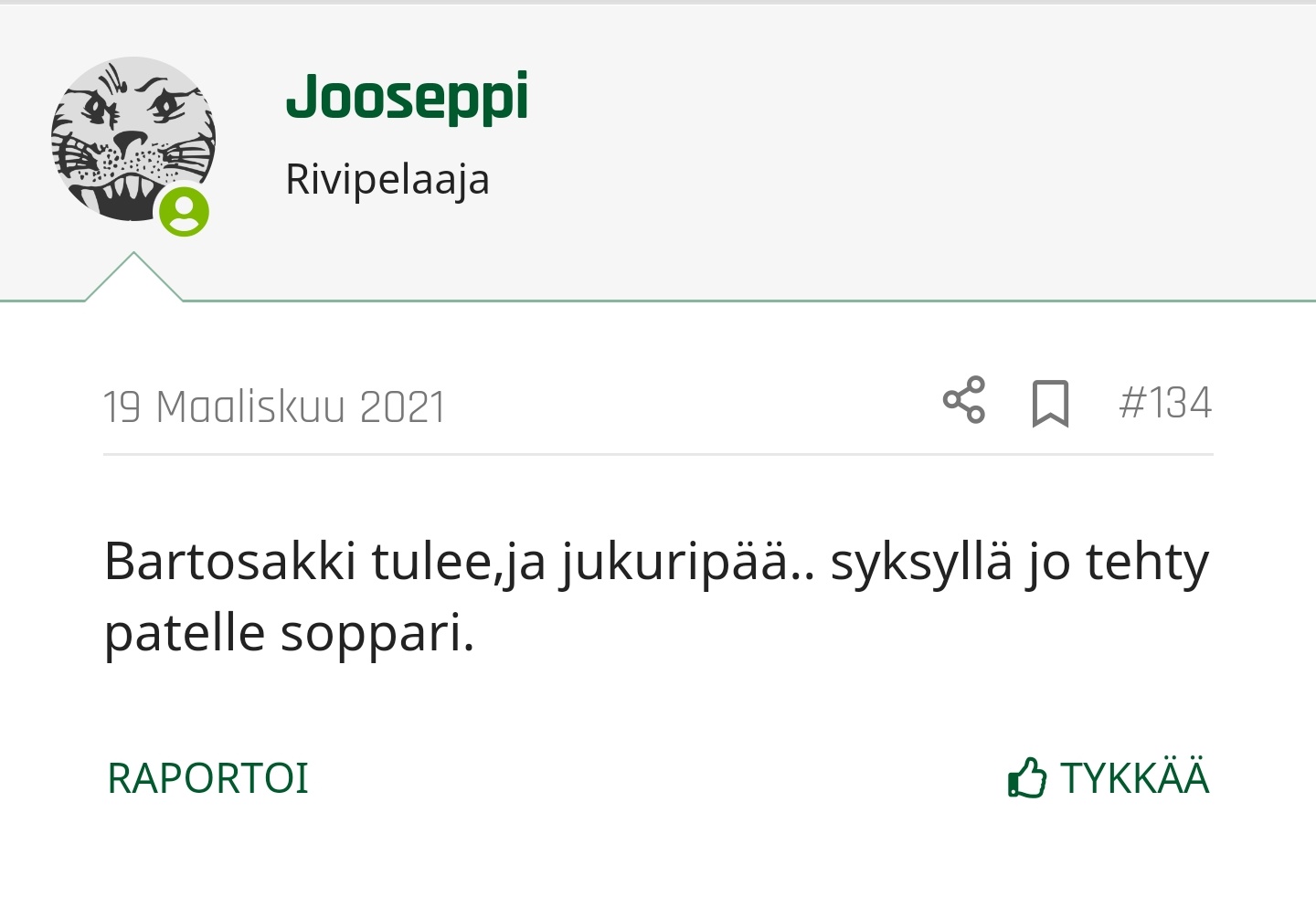 "Suomi, Lepaus, Ikonen, Leino, Rautiainen, Haapanen, Peltola, Parikka ovat varjoja viimekaudesta. Viimekauden tulokkaat ovat ottaneet harppauksen taaksepäin. Yksilötaito ei kuitenkaan katoa mihinkään. Näiden herrojen pitäisi olla alati vaarallisia kentällä mutta tällä hetkellä nämä säntäilevät päämäärättömästi pitkin kenttää. Esim Rautiainen ja Ikonen joutuvat tekemään älyttömän työmäärän edes päästäkseen kiekkoon puhumattakaan maalipaikkaan.