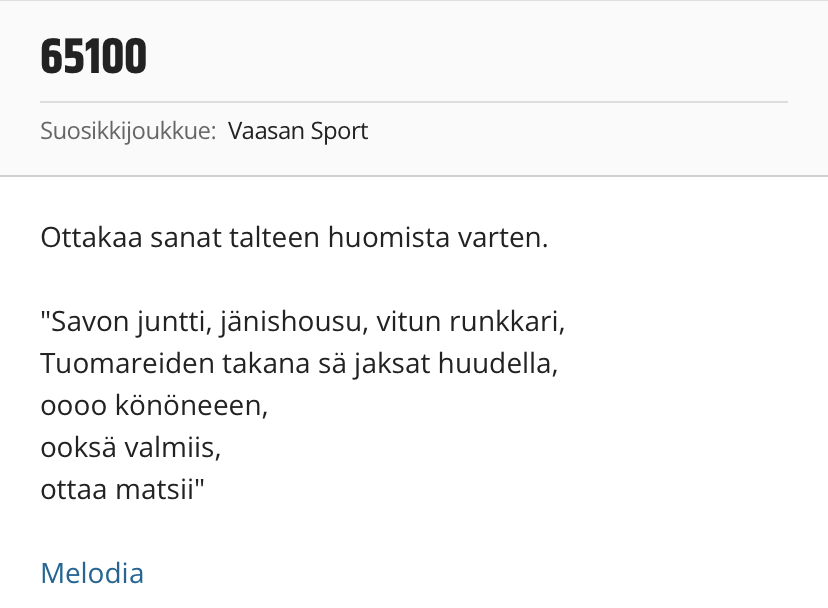 Edit. Niinku Könönenki, ei meillä montaa semmosta oo, ketkä puhelimee vastais.