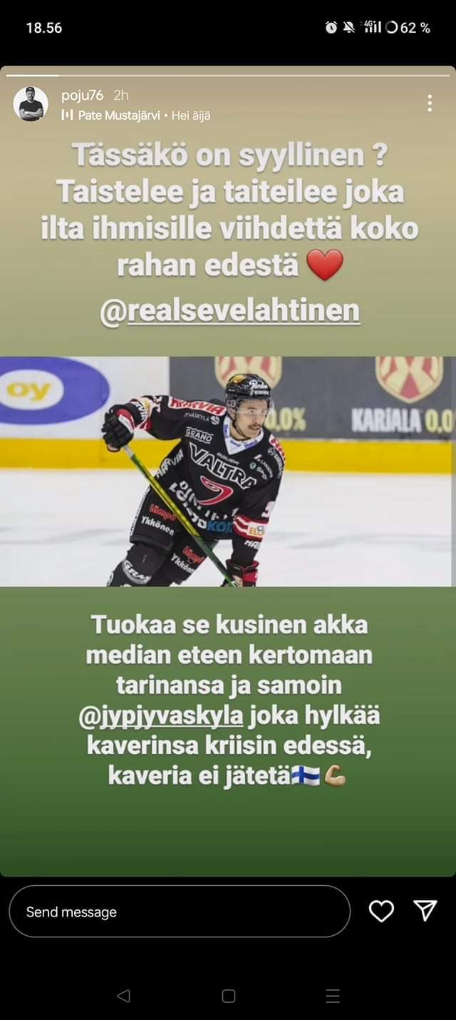 - Ja nyt, kun pelaajan henkilöllisyys ja kytkös seuraan on paljastunut, on seuran ulos antama lausunto noin mitäänsanomaton. Aivan varmasti heillä on ollut tiedossa etukäteen, koska Lahtisen tuomio annetaan, ja heillä on ollut aikaa valmistaa kattava, teon tuomitseva mutta tavallaan myös seuraa puolustava lausunto asiasta. Tämän olisi pitänyt olla seuran ykköstavoite. Mutta kun ei - lausunnossa ei edes tuomita tekoa, eikä oteta Lahtiseen minkäänlaista etäisyyttä. JYP siis viestittää yhä seisovansa tuomitun raiskaajan takana. SAATANAN LAMPAAT.