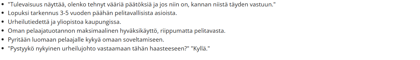 "En halua lähteä vastapallokeskusteluun median välityksellä, sillä nykyinen joukkue tarvitsee kaiken tuen, mikä saatavilla on."