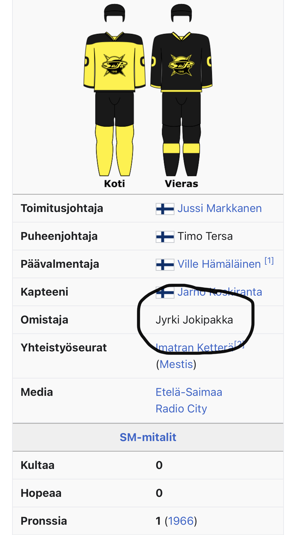 ”joku”Joku kerenny Jykän käydä merkkaamassa SaiPan omistajaksi Wikipediassakatso liitettä 3918