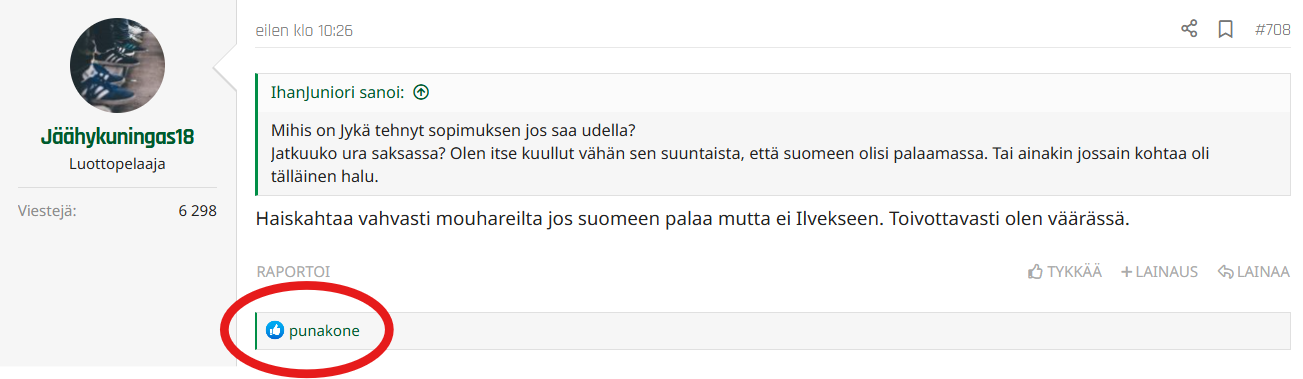 Sitä, että jos nyt tarjotaan 220k, Tapsu tarjoaa 260k, niin Ipan tarttis tarjota 300k "koska oma poika", sitä dialogia en oikein ymmärrä. Sitäkin on tällä palstalla nähty...