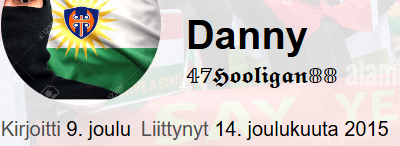 Ilmeisesti allekirjoittaa, koska eipä näytä haittaavan et fasisti larppaajat leikkivät huligaaneja seuran rahoilla.Joo näin on, siis alunperinhän tuo koko porukka syntyi siitä kun junnut halusivat perustaa oman alajaostonsa ja vähemmän yllättäen sekoiluksihan se on mennyt kun on lyöty viisaat päät yhteen. Ei SO:n muu jengi pitkälti tuota perseilyä allekirjoita.