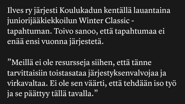 Se oli viimeinen Koulukadun Winter Classic