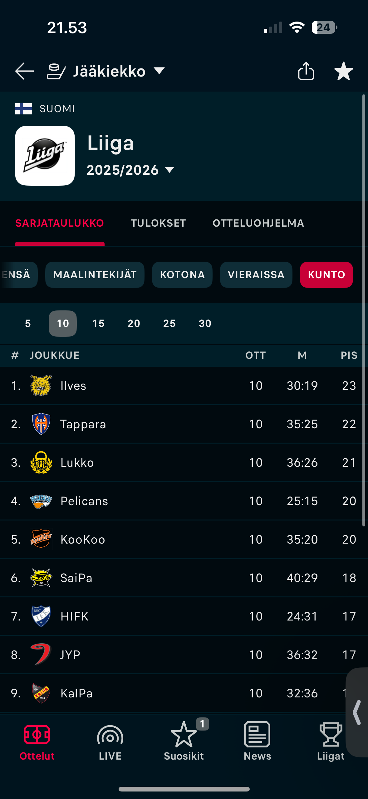 Joo kyllä se on näin, ei tuollaista alkua tuloksellisesti voi hyväksyä ja jatkossa täytyy saada vältettyä vastaavat. Tehdään turhan vaikeaksi asiat ja 4. joukkoon täytyisi päästä, koska sen ulkopuolelta vaikeutuu huomattavasti kannun voittaminen (vaikkei mahdotonta olekaan). Että on se tuska ihan ymmärrettävää.Kyllä se alkukauden tulostaso kiroiluttaa edelleen, sillä on hurja homma kivuta TOP4, mutta siitä, kun ensimmäisen kerran suuntaa antavia laskelmia alettiin tehdä, niin vaadittava tahti on ollut päällä. Enkä mä sitä, etteikö nelosen ulkopuoleltakin voitais mennä minne tahansa, mutta kyllä tämä alkaa nyt näyttää niin hyvältä, että vielä kun pääsis sen ensimmäisen pleijarikierroksen välttämään...