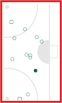 Laukaukset sektorista (torjutut, maalit ja ohi menneet): 19-7