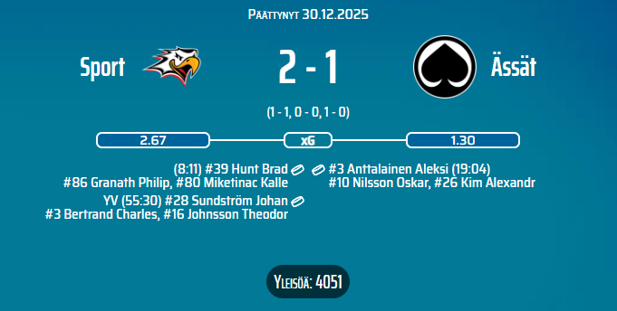 Nyt sitä teki jo pajatsonsa tyhjentänyt Sport, joten jotain pitäisi keksiä siihen ennen pleijareita, joissa tuota nähdään vielä paljon lisää.