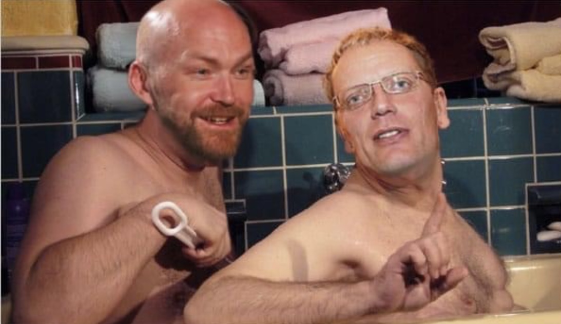 Siis meinasin, että kuka tän kuvan on tehnyt, miksi ja koska?Näyttäisi olevan muokattu kuva, jossa Viitanen pesee Seppäsen selkää