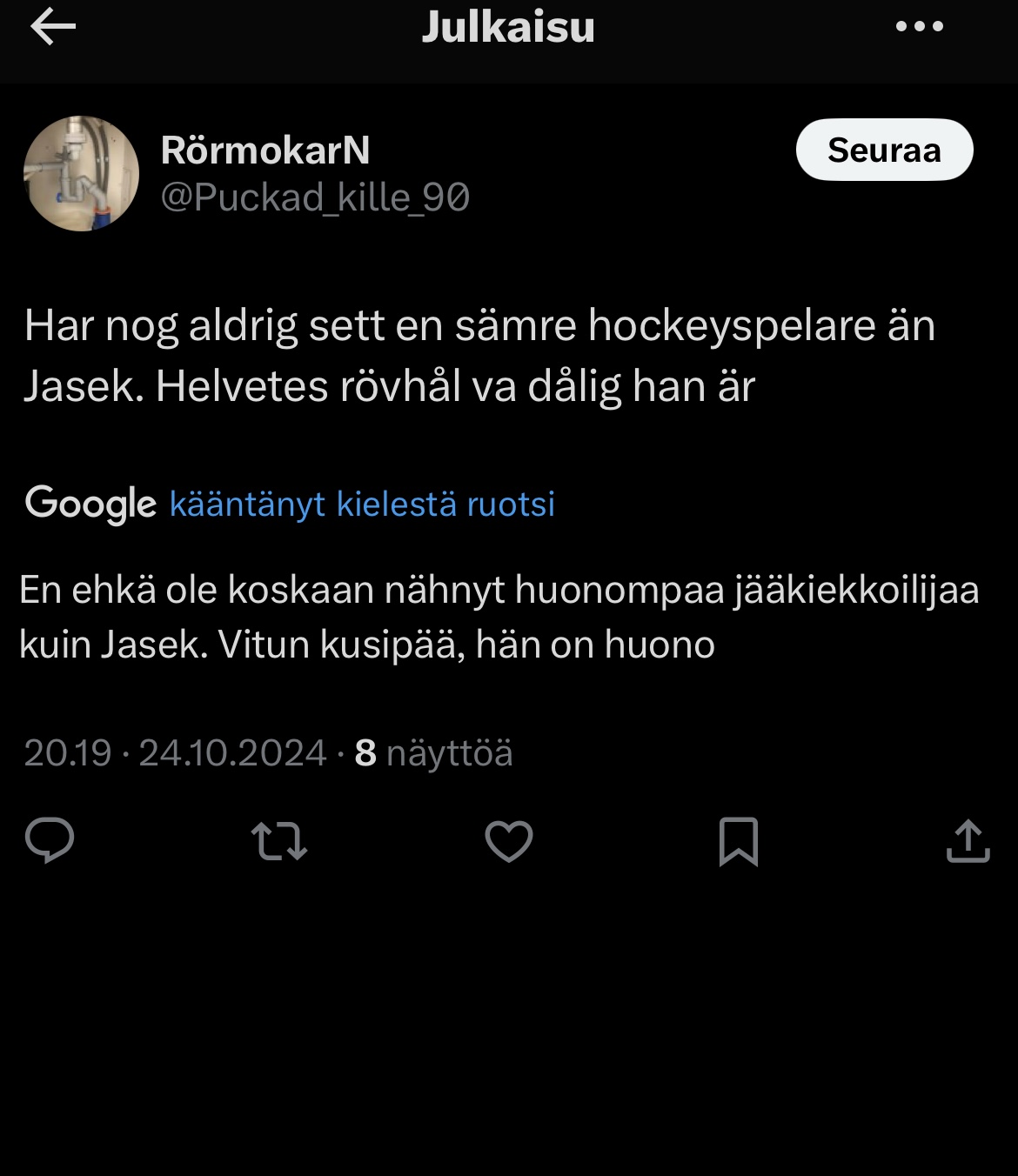 Haaste on heitetty. Antakaa se Jasek tänne, niin saatte vaihdossa minibussillisen takuuvarmasti huonompia pelaajia.katso liitettä 10661Veden toisella puolen ei tosiaan olla kovin tyytyväisiä Jasekin esityksiin.