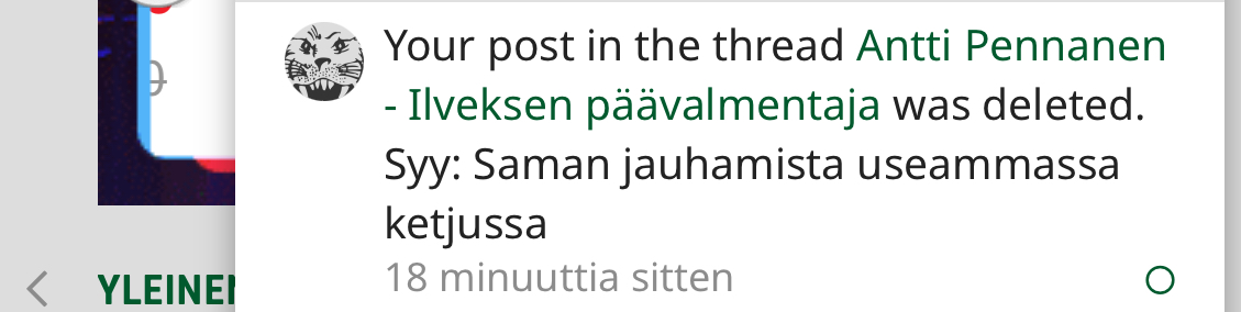 Noin 10 minuuttia ennen poistettua viestiä: