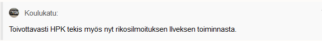 "Huutonaurut myös vahvasti teidän leiriin, kun viime kaudella muutama tapparalainen treenasi tyhjässä hallissa. En edes muista, mitä kaikkia rangaistuksia ilvesläiset vaati Jukalle ja Tapparalle. Älä nyt helvetti tule moralisoimaan."