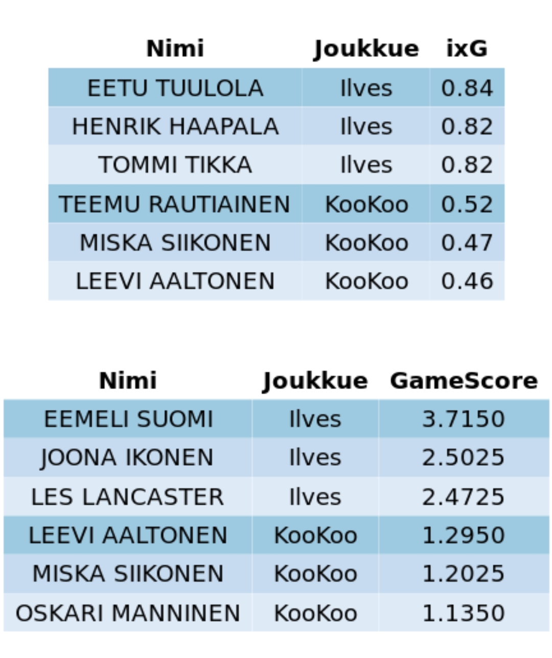 Vielä on silti tuossakin kaavassa jotain virhettä kun Ikosen läpiajo tuotti maaliodottamaa alle 0,1 maalia. Pikkasen on noissa korjaamisen varaa.