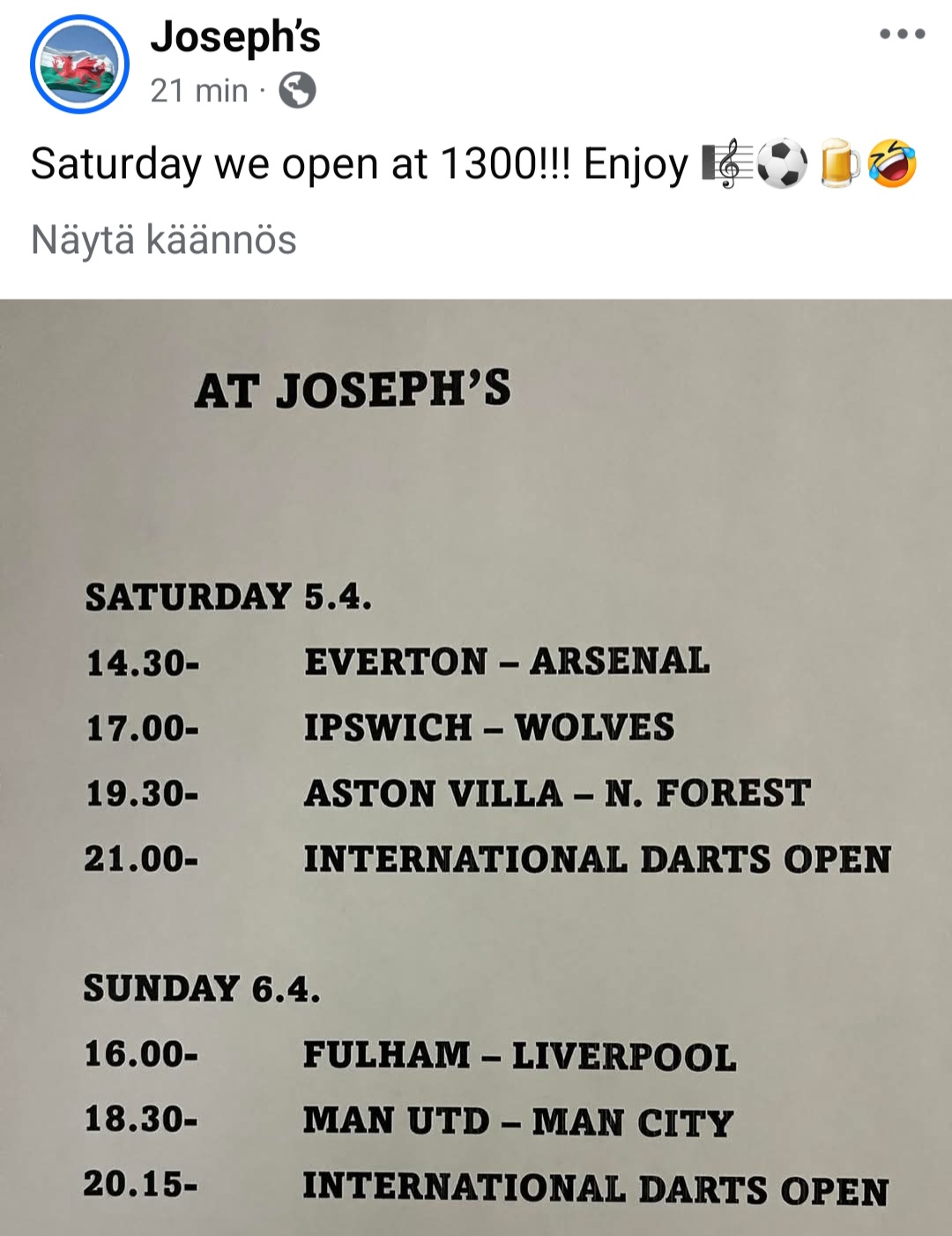 Tuolla on näköjään Julius Mattilallekin järjestetty ohjelmaa; Valioliigaa telkkarista![]()