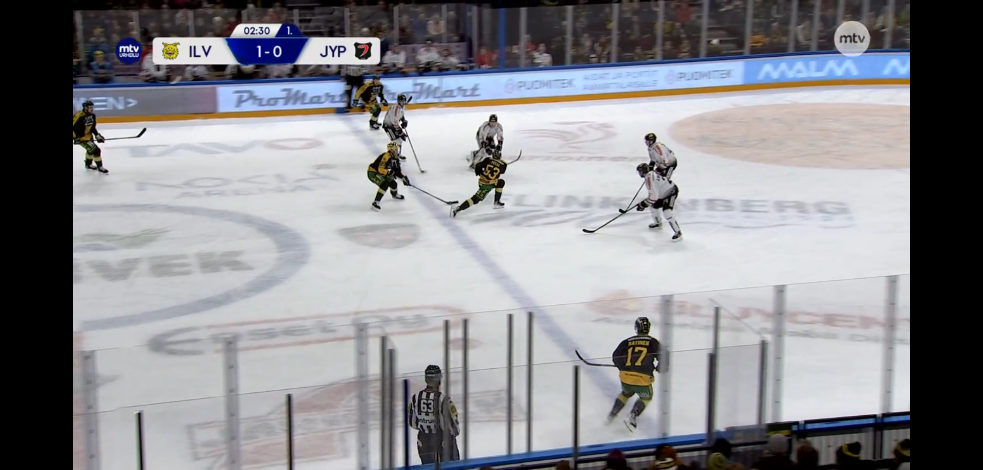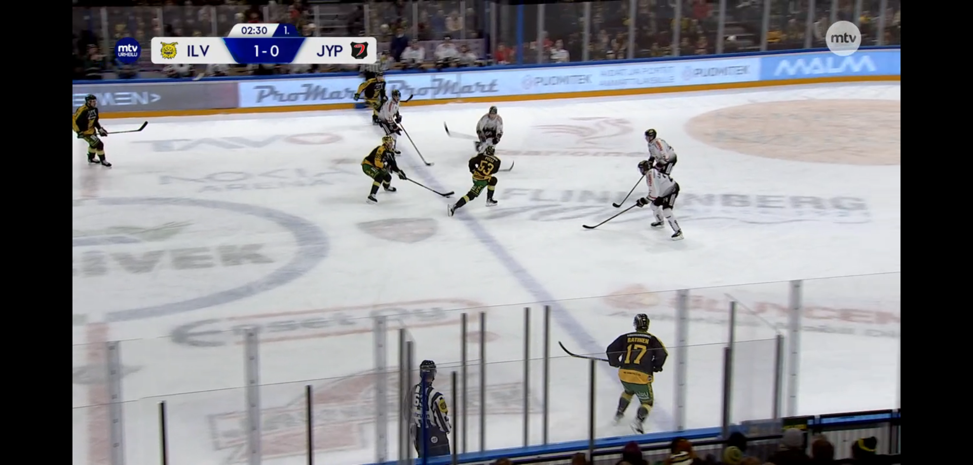 Kiekko on tuossa jo hyvän matkaa yli ja jalka on viivalla. Ellei sitten Suomi tuolla taustalla ole, mutta luulen että hänkin on viivalla.