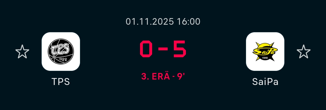Sport tarjoilee kyllä tuolla oikein kunnolla omalla perseilylläänTappara pistää aivan hyrskyn myrskyn Vaasassa. Täytyy olla perjantaina tarkkana.