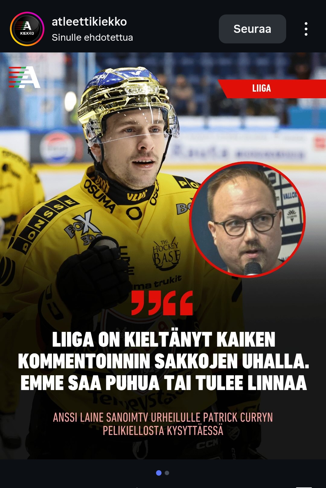 Ja laitetaanpa nyt vielä, että tässähän ei tuollaisesta ollut ensinkään kysymys. Vai meinaako joku, että HIFK valjasti Lehterän ja Revon varjostamaan Currya? Valot päälle.Kyllähän tuollaista varjostamista on aina harrastettu varsinkin näille Curryn ja Wrightin tapaisille hermoheikoille hepuille. Kyllä se on ihan heidän omalla vastuulla hermostua tai olla hermostumatta. Aika harvoin tuonne lähetetään valituksia ilman että niissä ei olisi mitään perää. Yleensä tulee se ottelu tai kaksi pelikieltoa.