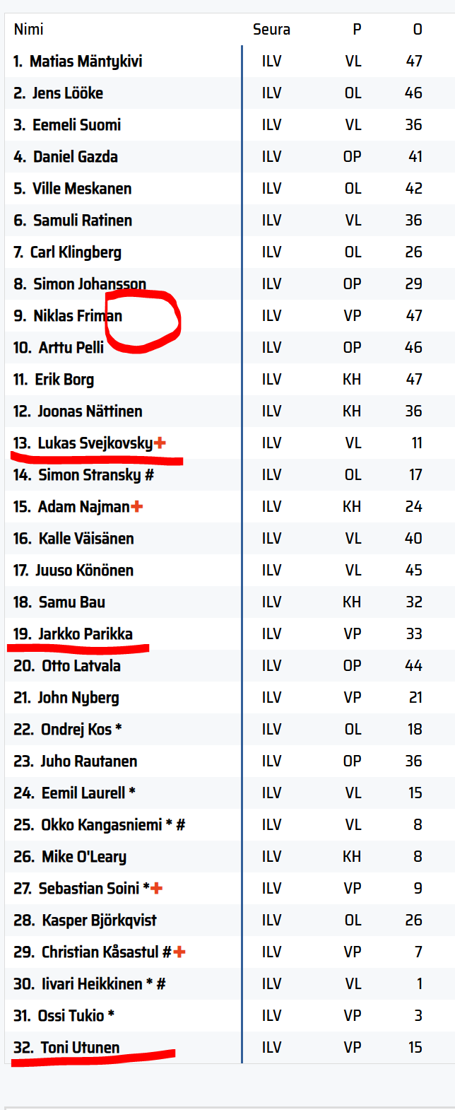 Näpyhän sano alku viikosta että hiljaista on luokkien suhteen. Jos tohon uskoa, oisko sitten svejkillä se pikku luokki ja nikellä noidannuoli tai toisinpäin?Jos Liigan tilastoihin on luottamista, niin on edelleen aidosti loukkaantuneena ja tuskin huomennakaan on peleillä. Parikalta on poistunut loukkaantumismerkki, vaikka ei tänään rosterissa. Samoin toki Utuselta. Svejkovskylla kuitenkin edelleen on risti nimen perässä.