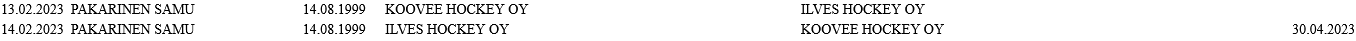 Tai sitten henkilö joka merkitään jonka saa nostaa mestiksestä tarvittaessa ja tuollainen kikkailu pitänyt tehdäEn tiedä, mutta eilen siirrettiin KOOVEE:sta tää Pakarinen Ilvekseen ja tänään siirrettiin takas ja rajoitusaika tuonne 30.4.2023, joten onko ollut joku varotoimenpide?